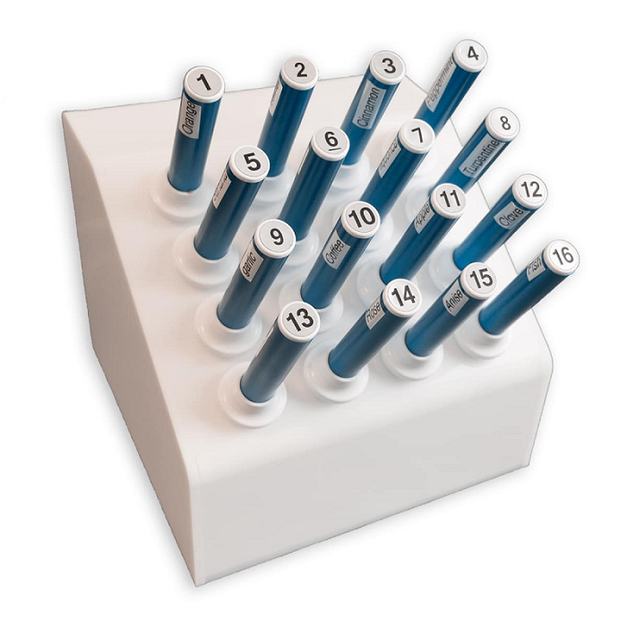 简介:嗅觉阈值测试套件由20根嗅觉“棒”组成。五种不含气味,而其他的含有半对数稀释,从10-2(强)到10-9(弱)的vol/vol浓度。快速、可靠地确定阈值。